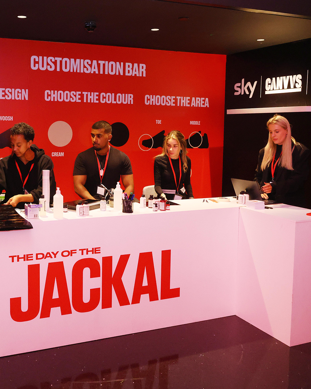CANVVS teamed up with Sky to create 20 limited-edition pairs of exclusive sneakers inspired by the outfit worn by Lashana Lynch’s character Bianca throughout the thrilling new TV series The Day of the Jackal. CANVVS also delivered at the Sky TV activation in London, providing 3 custom sneaker creators on-site customising shoes for influencers and guests on the night.