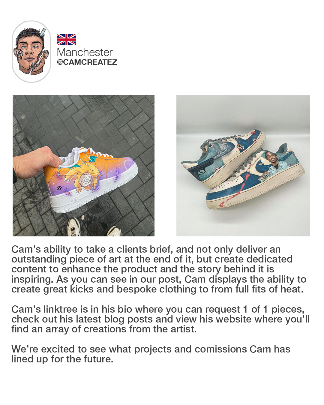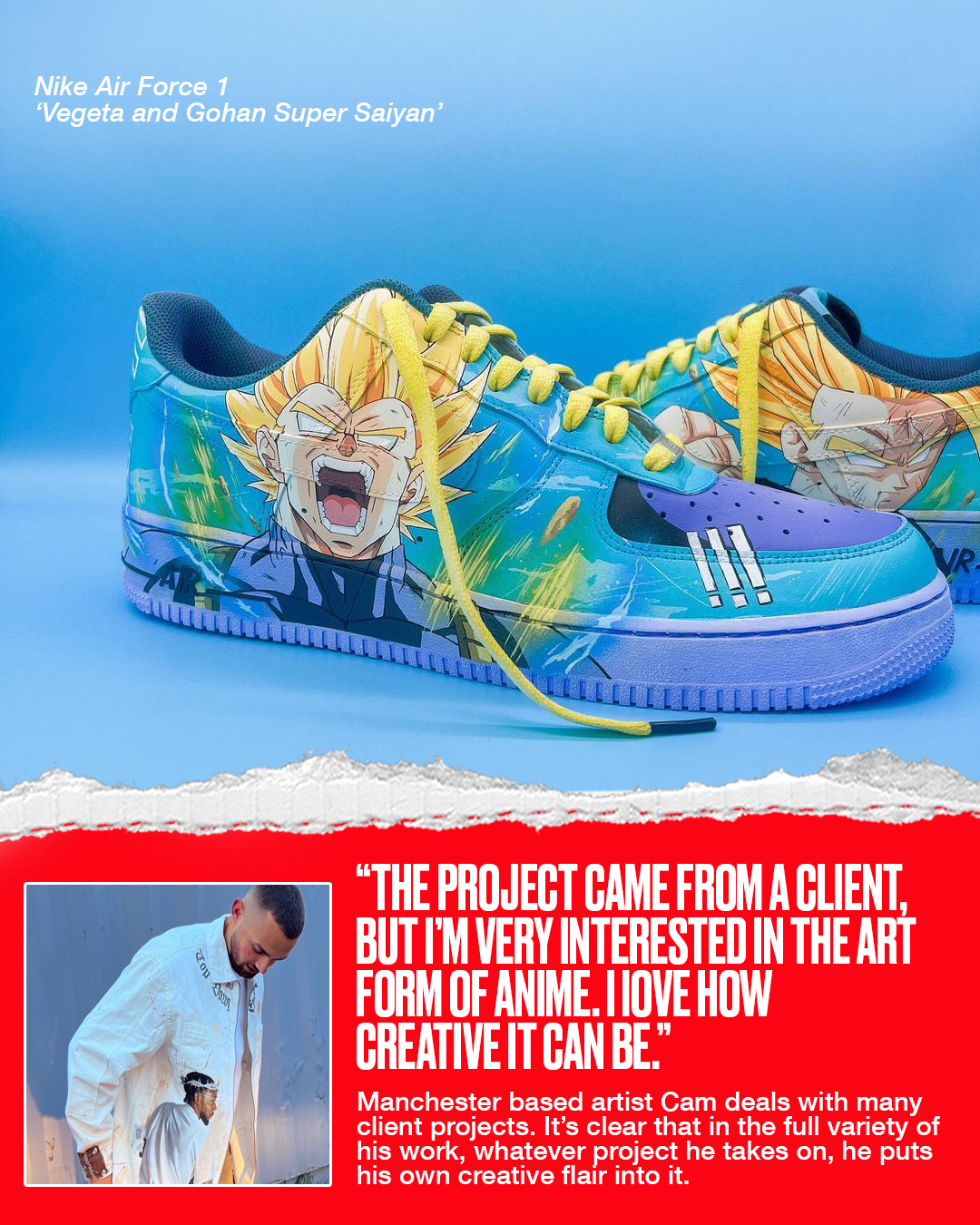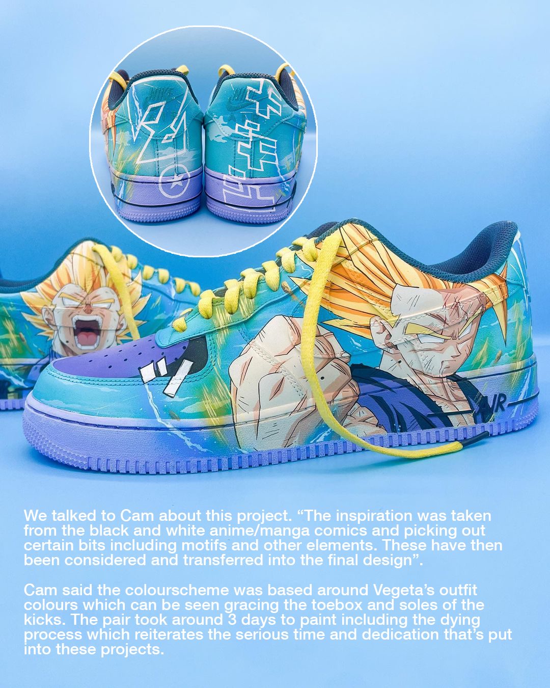 Read a feature we did on Cam's work, checking out a client project he has recently been working on. The 'Dragon Ball Z' AF1's depict characters and motifs from the popular anime, along with a considered colour scheme as always. An insane amount of detail. We've talked to Cam about this project and being in the sneaker game, so have a read through the post.