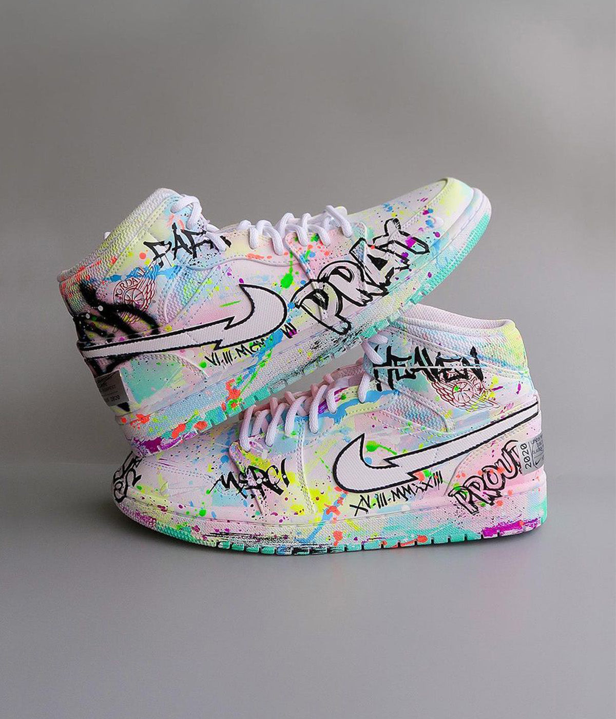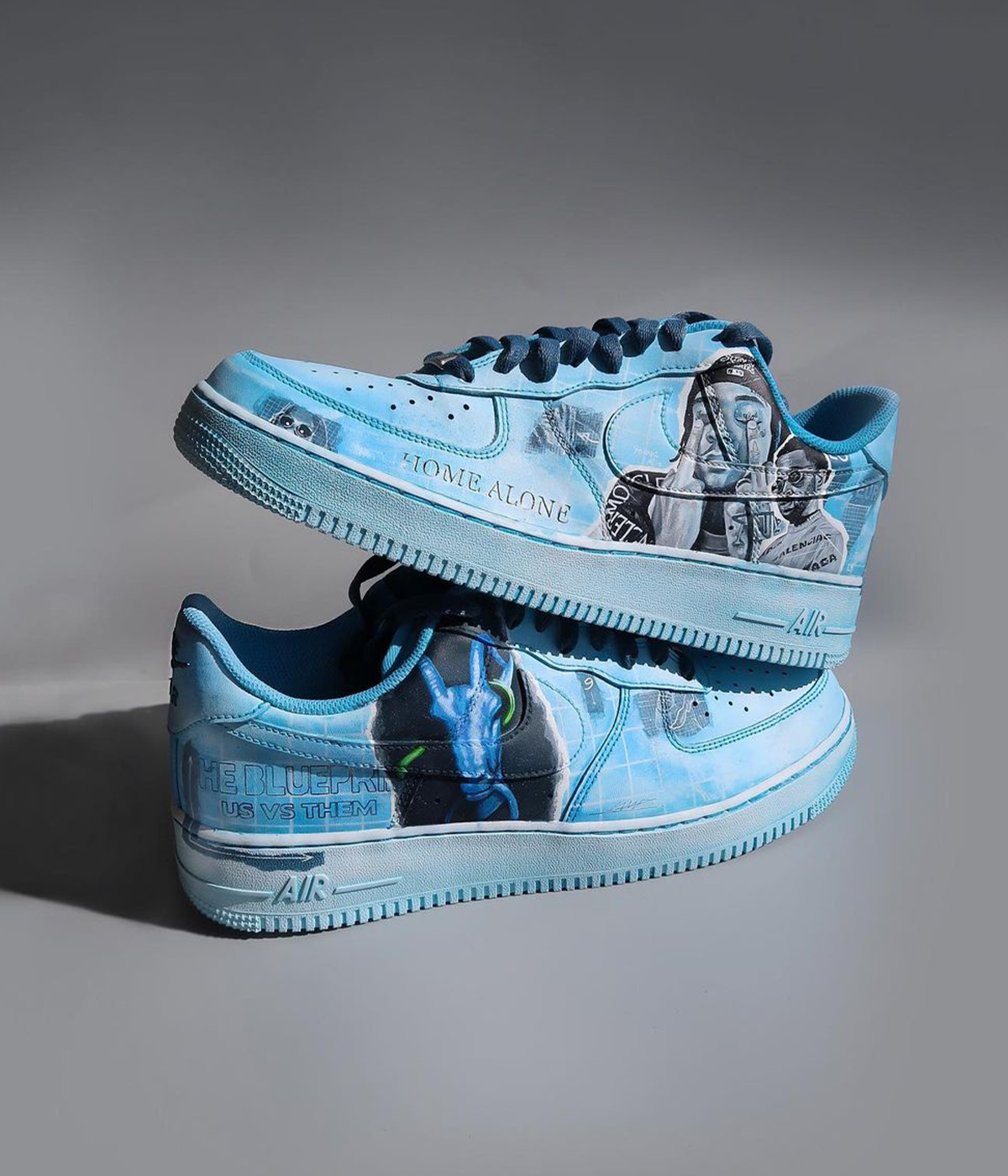 These sneakers feature intricate designs and eye-catching details, making them stand out from your standard shoe. Whether for special occasions or everyday wear, these customisations reflect the artists dedication to sneaker culture and their unique place within this art form.