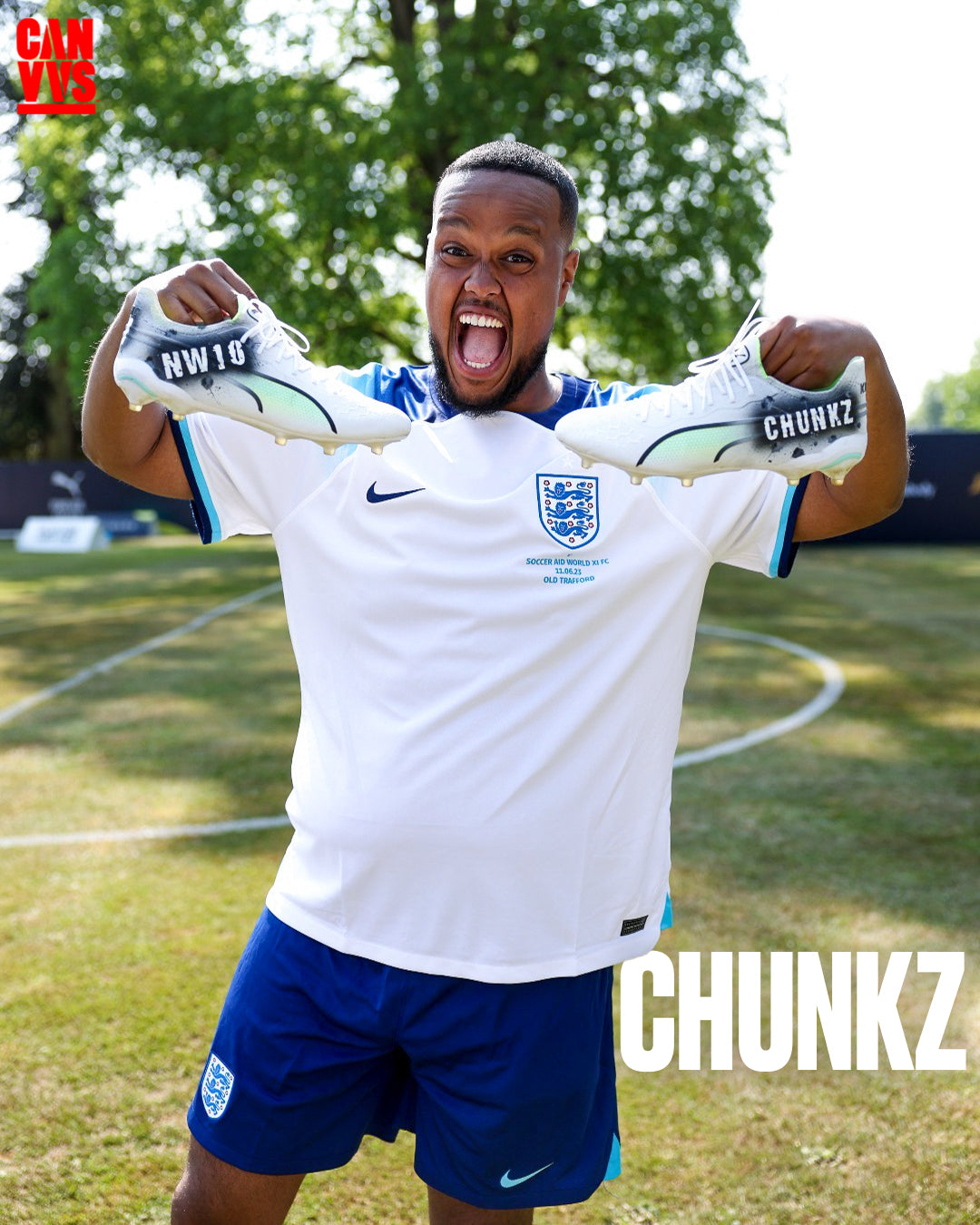 A closer look at @chunkz custom PUMA boots. Chunkz, is an English YouTube personality, host, entertainer and former musician has attended Soccer Aid for the last 3 years. He has won over thousands of fans with his lively personality videos in his popular #MANDM series.
