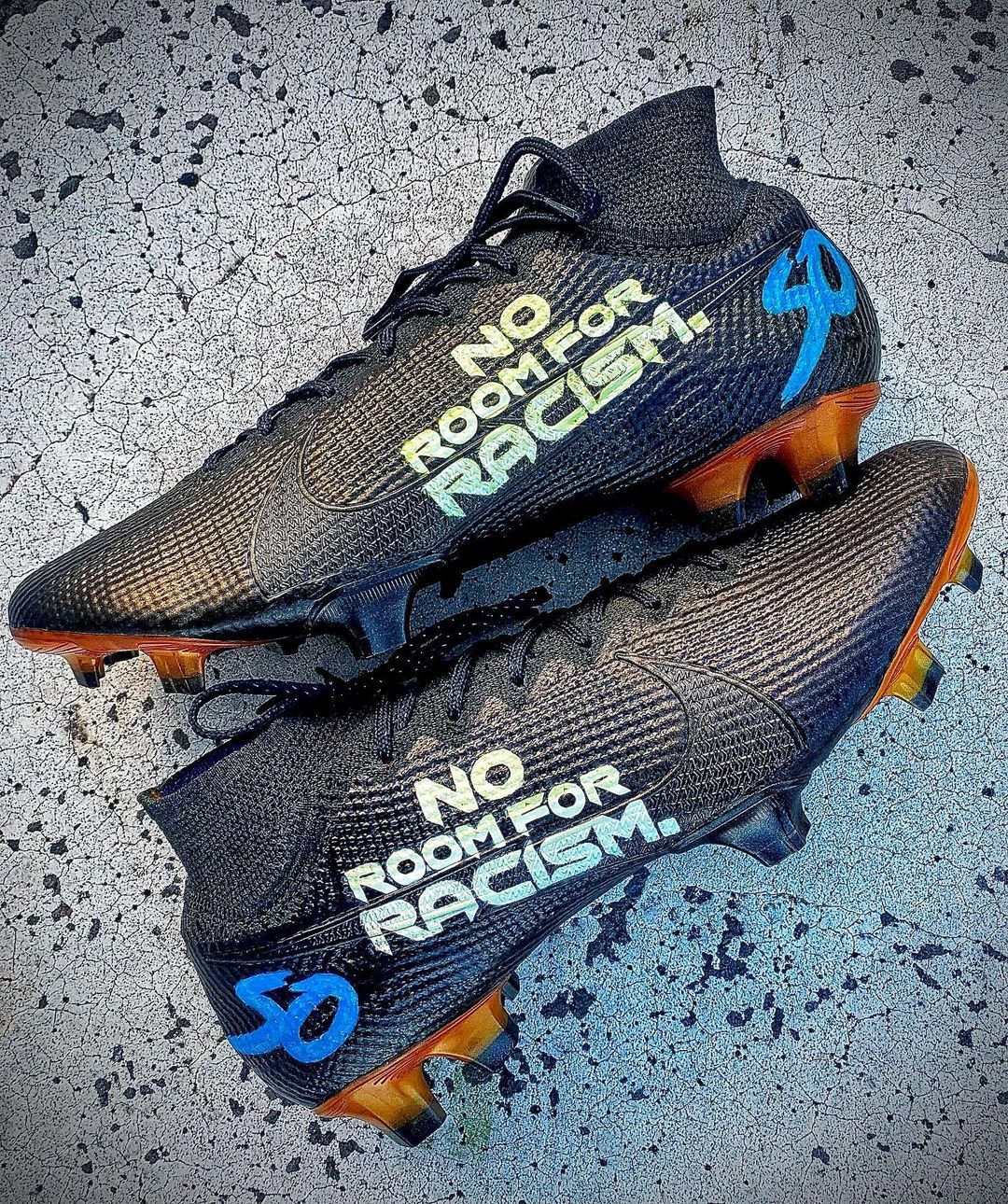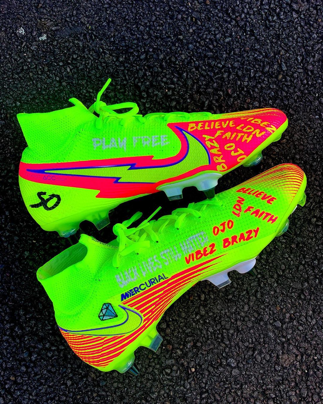 With each design I create, I consider the moto 'create what they don't make'. I take real pride in ensuring each sneaker is to its best quality as it is being worn by the best players. I also love adding impactful statements to certain pieces, as they can be very impressionable whilst being worn. During the BLM movement, a lot of my shoes displayed slogans such as "stop racism" and "say no to racism" to ensure these powerful messages could be seen as the players wore the boots. I love the power of customisation in its ability to spread the right messages to the right people.