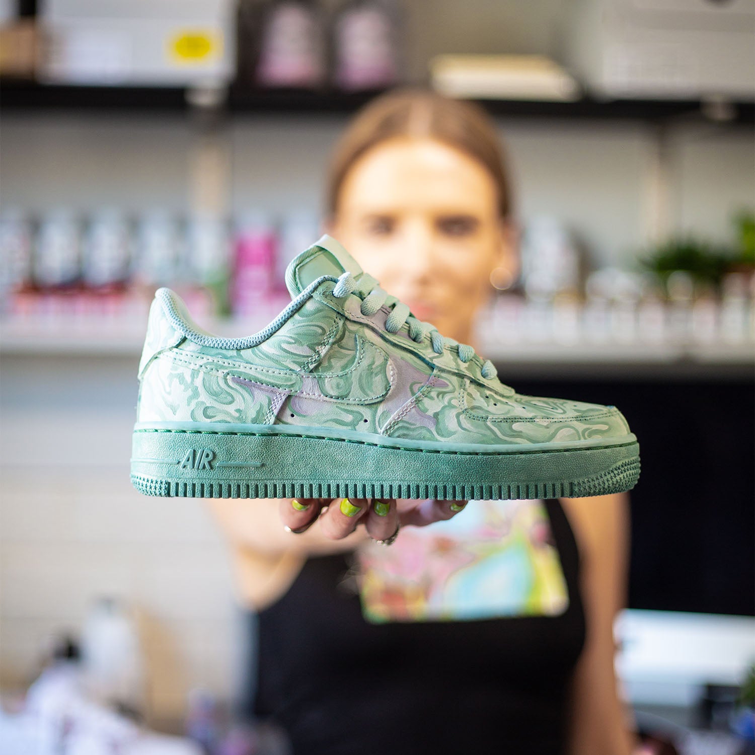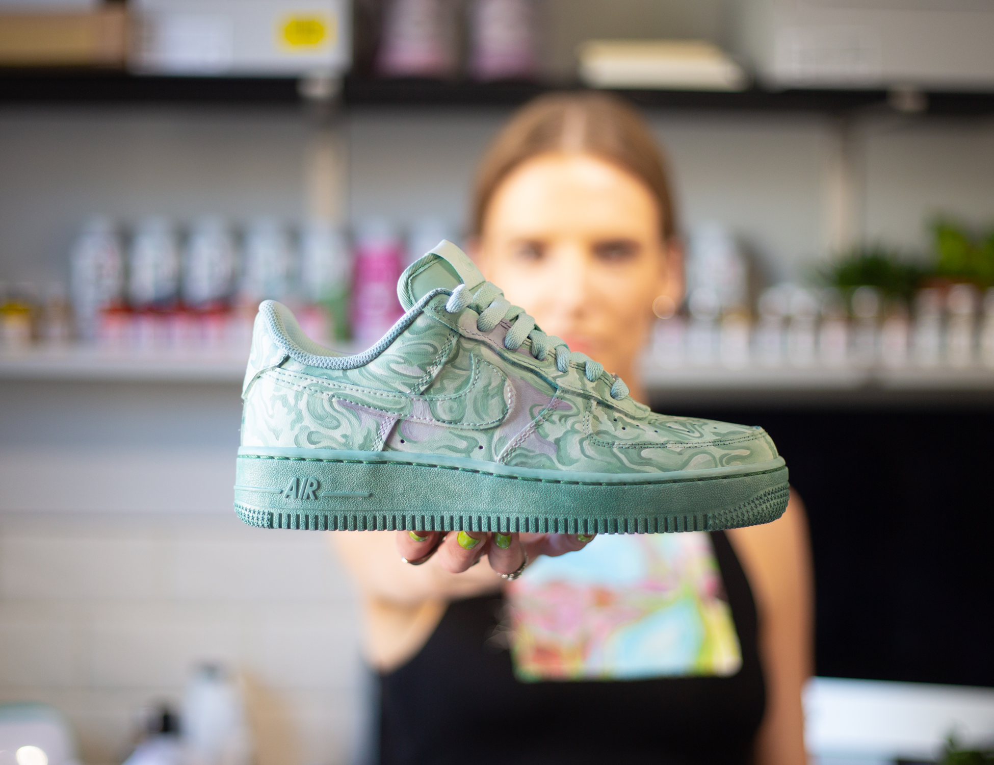 Best known for her Portrait style Customs, Leanne was one of 3 sneaker artists to work on the custom England Nike Air Force 1 project.