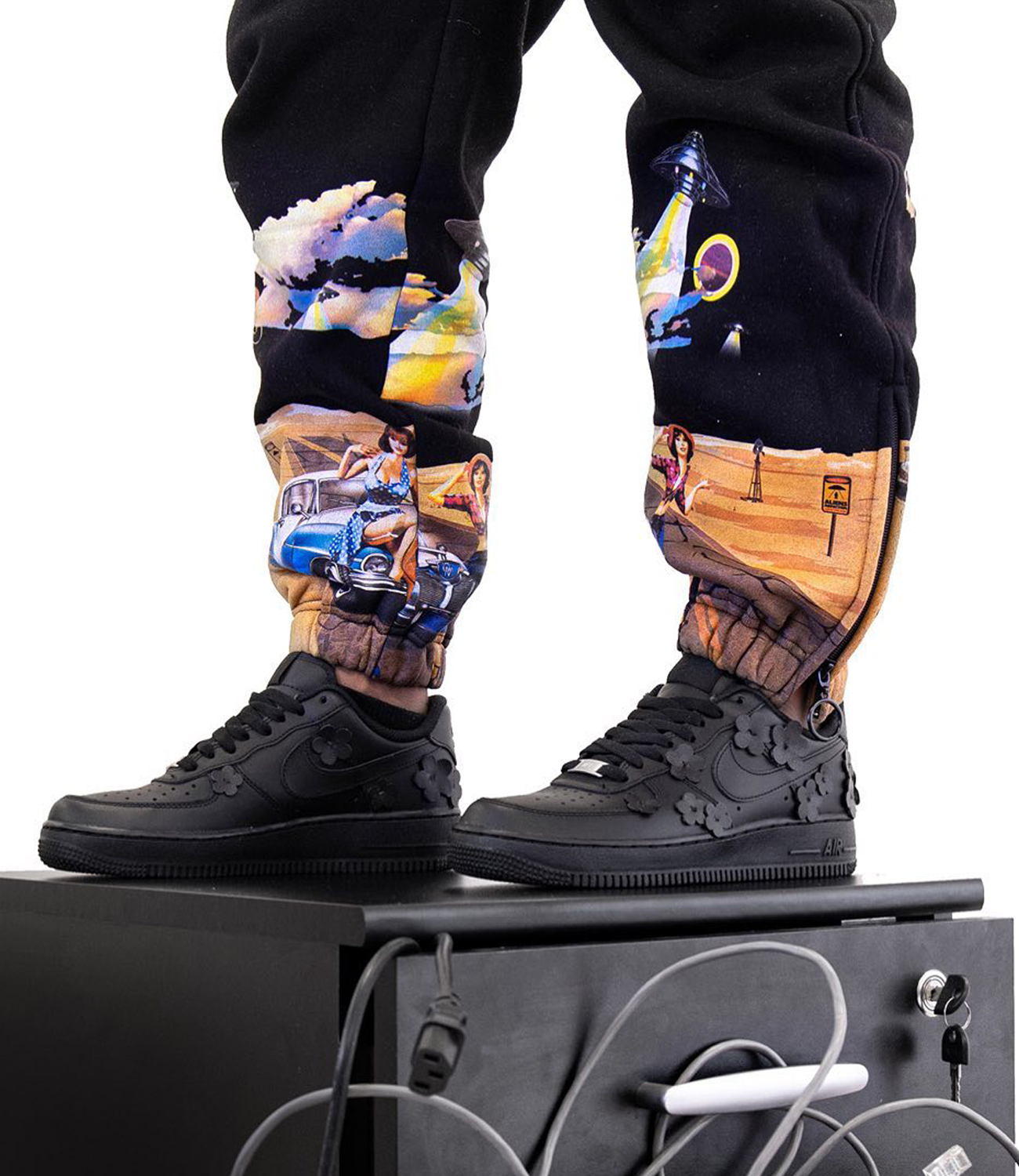 These sneakers feature intricate designs and eye-catching details, making them stand out from your standard shoe. Whether for special occasions or everyday wear, these customisations reflect the artists dedication to sneaker culture and their unique place within this art form.