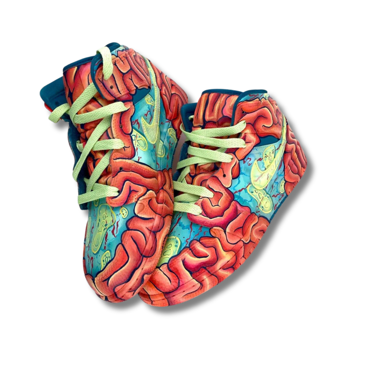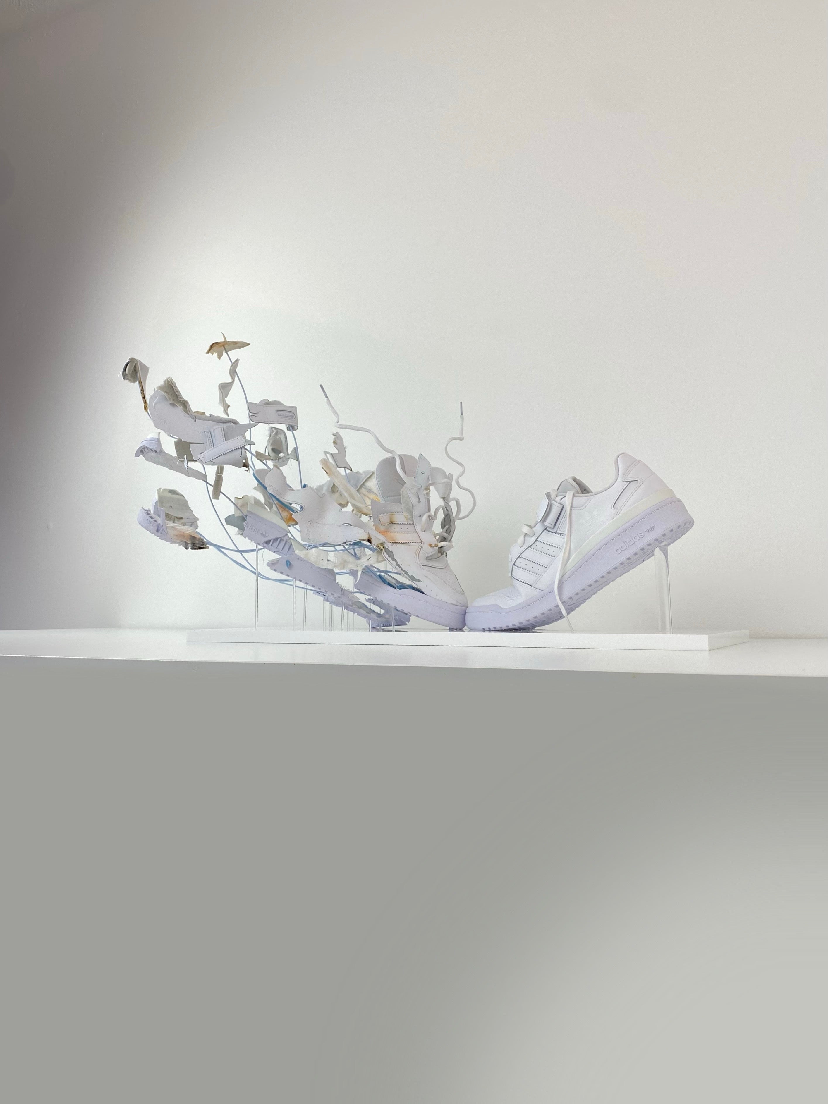 Whether the sneaker is wearable or not, each piece expresses thoughts which aren’t always possible verbally. I love arbitrary work which allows an open end for others to interpret how it speaks to them. With each piece I prioritise connecting the art to human emotion, physicalising my thoughts and in turn the impact that will have for the owner.