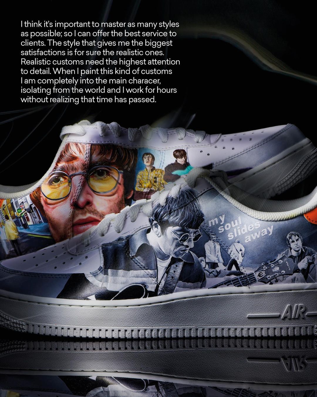 These sneakers feature intricate designs and eye-catching details, making them stand out from your standard shoe. Whether for special occasions or everyday wear, these customisations reflect the artists dedication to sneaker culture and their unique place within this art form.